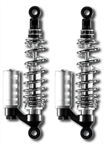 show chromed steel bodied shocks. Feature spring pre-load,